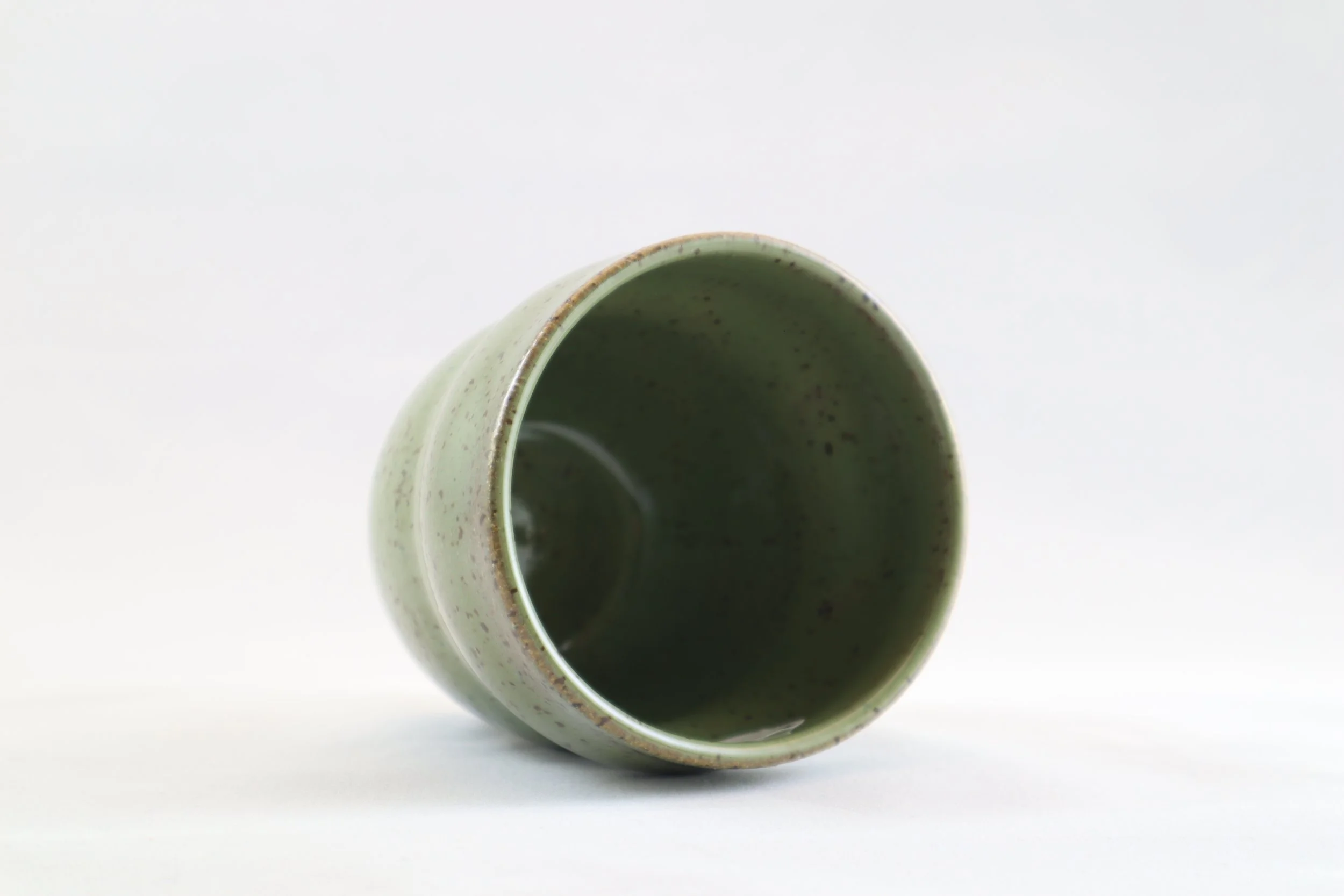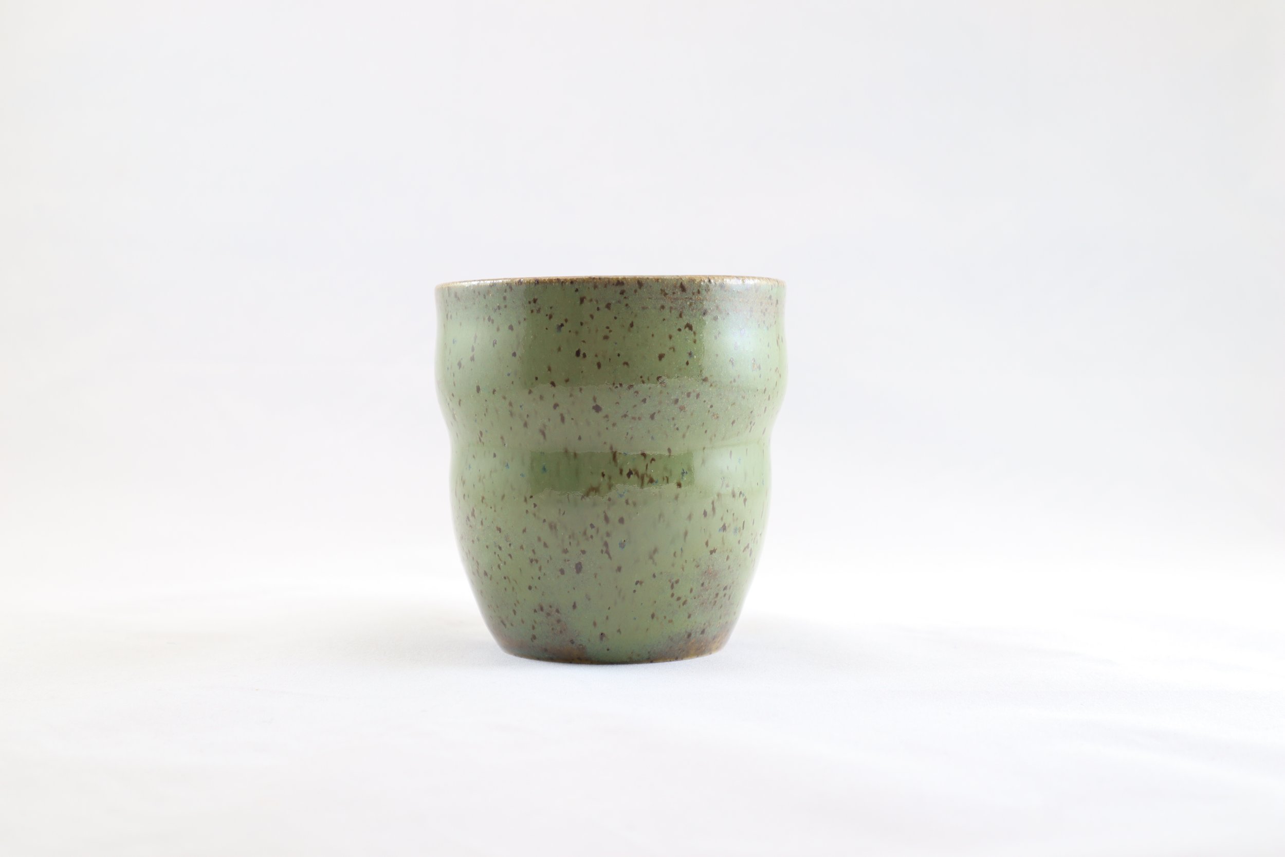 These pitchers are great for creamer or for flowers. Each holds about 12 oz. of water and is about 5.25 inches tall by 3.5 inches in diameter. The glazing, while slightly different on each piece (I am posting 5 for sale) is still well represented in the pictures. They are a calming blue green with speckling all over.